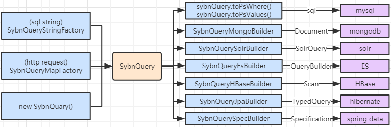 - 目前已经支持用其读写 mysql, mongodb, solr, elastic, hbase, redis 数据库,以及 java collection 和 stream, 并支持整合到 spring data / hibernate jpa 的查询框架.
