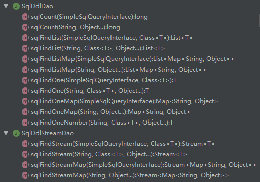 另外还有用于查询 list 和 Stream 的实现类:SqlDdlDaoListImpl / SqlDdlDaoStreamAsyncImpl