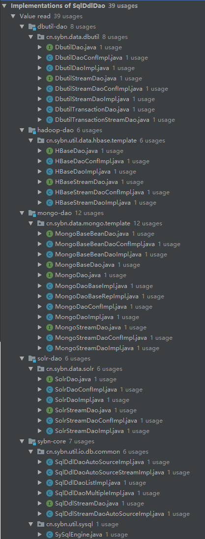 另外还有针对不同数据库联合查询的实现类: SqlDdlDaoMultipleImpl