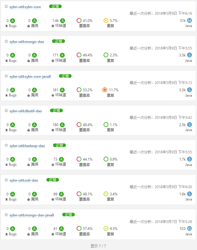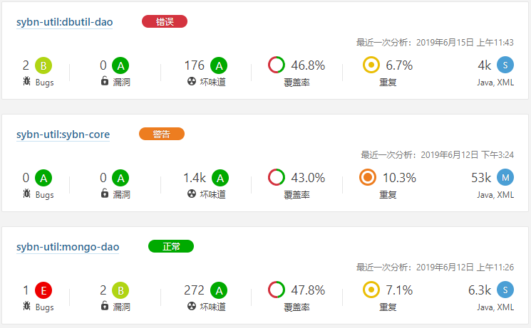 简介 2020-06-13 2019-06-15 2018-10-10 2018-05-09 简介 打算定期截一下质量报告,督促自己维持和提高代码质量 2020-06-13 2019-06-15 2018-10-10 2018-05-09