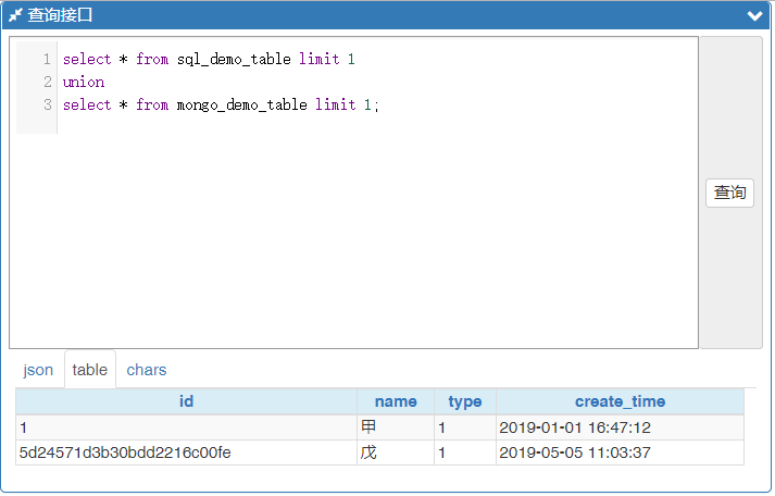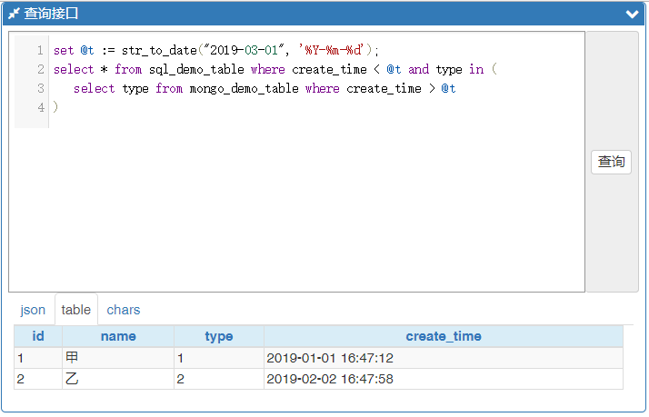 - 在一条 sql 里联合查询 mysql 和 mongodb 两个数据源